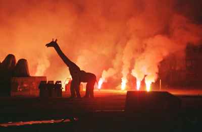 BF01: The only giraffe I ever saw in Africa was this one which was part of the opening celebration for Fespaco, the Pan-African film festival, held biannually in Ouagadougou, Burkina Faso.