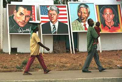 GH03: At an art shop in Accra, a display of Ghanaian idols.