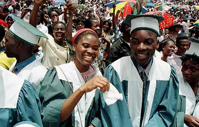 CZ21: University of Kinshasa students celebrate at their graduation ceremony.