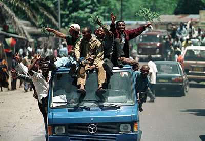 CZ28: Anti-government protestors demonstrate at a rally against Mobutu.