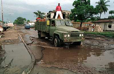CZ61: Kinshasa's infrastructure has been left to ruin as shown by this street in central Kinshasa.