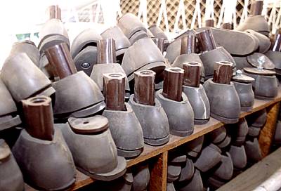AN11: Spare molds of prosthetic feet on the shelf at a Red Cross rehabilitation center in Kuito.