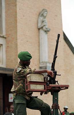 CZ65: A Zairian soldier stands guard near a church in Kinshasa.
