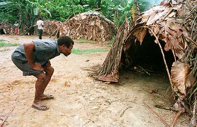 GA06: A man peers into a house in a pygmy village in northern Gabon.