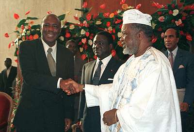 SL22: Sierra Leone president embraces RUF rebel leader Foday Sankoh.