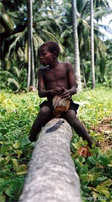 ST07: A boy tears open a coconut husk in Santa Catarina.