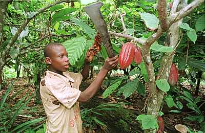 IC22: A cocoa farmer cuts a cocoa pod in central Ivory Coast.