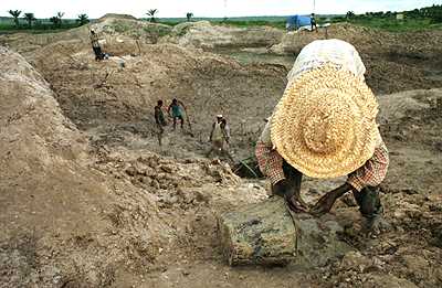 CZ01: A boy searches for diamonds in the mud near Mbuji-Mayi, Congo.