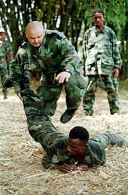 CZ45: A mercenary from Serbia trains Zairian troops in hand-to-hand combat in 1997.