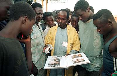 NR02: A worker for CARE Int'l educates young men about condom use in Niamey, Niger.