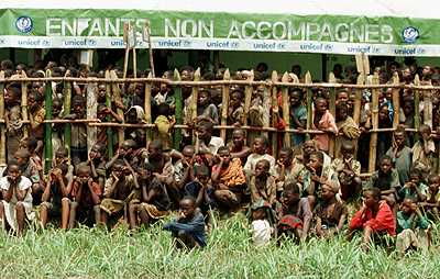 CZ41: "Unaccompanied children" at a Unicef tent at a refugee camp in Tingi-Tingi, Zaire.