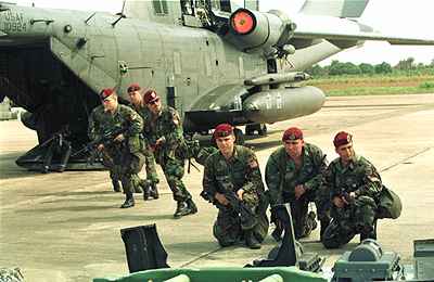 SL12: The U.S. military practices operations on the tarmac at Freetown's Lungi airport in 1996.