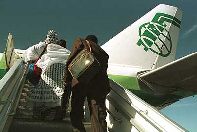 IC28: Passengers board an Air Afrique flight.