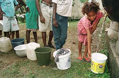 LB07: Liberian refugees in Ghana collect water from an E.U. donated tank.