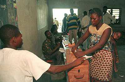 BE03: A voter casts her ballot in Porto Novo, Benin.