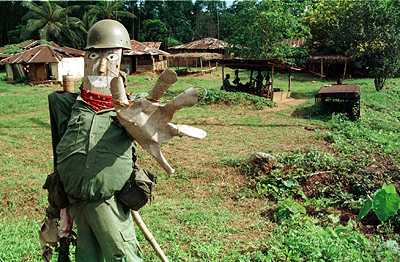 LB26: Nigerian peacekeepers erected "scarecrow" soldiers to warn cars to stop at highway checkpoints.