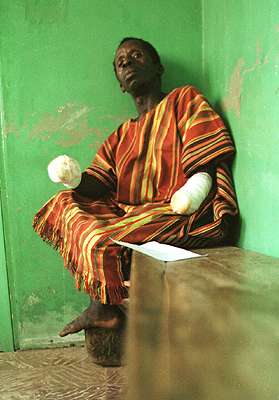 SL19: A mutilation victim awaits surgery at Freetown's Connaught Hospital.