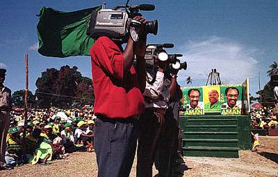 TZ14: Cameramen at a CCM rally in Pemba, one of two islands making up the semi-autonomous state of Zanzibar.