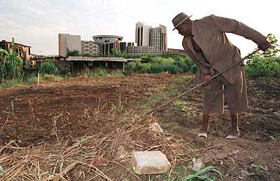 GA03: A migrant farmer clears his land near a government building in Libreville, Gabon.
