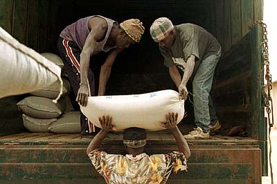 SN53: Loading a sack of rice onto a truck in Dakar, Senegal.