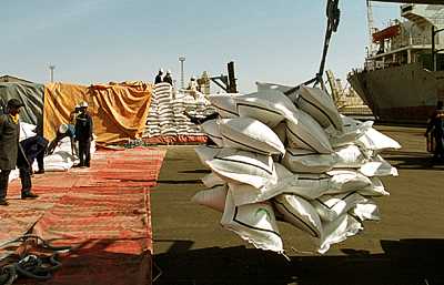 SN43: Bags of rice are unloaded from a ship in the port of Dakar, Senegal.