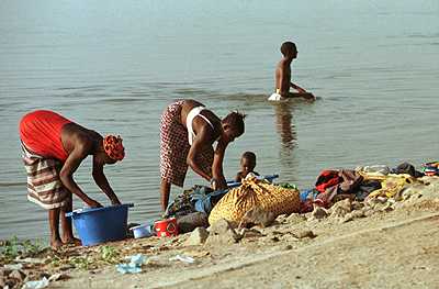 MA08: Women wash clothes on the banks of the Niger River in Bamako, Mali.