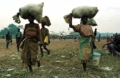 CZ30: Women receive supplies at a refugee camp in Ubundu, Zaire in 1997.
